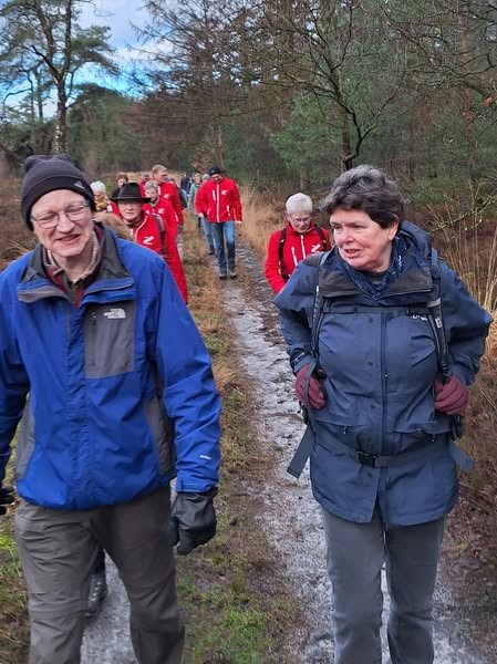 De eerste groepswandeling in 2025 had iets feestelijks. Anneke en Jos vierden hun 50-jarig huwelijk. Dit hebben we met de leden gevierd tijdens de rust met een gezellige wandeling, koffie en gebak.